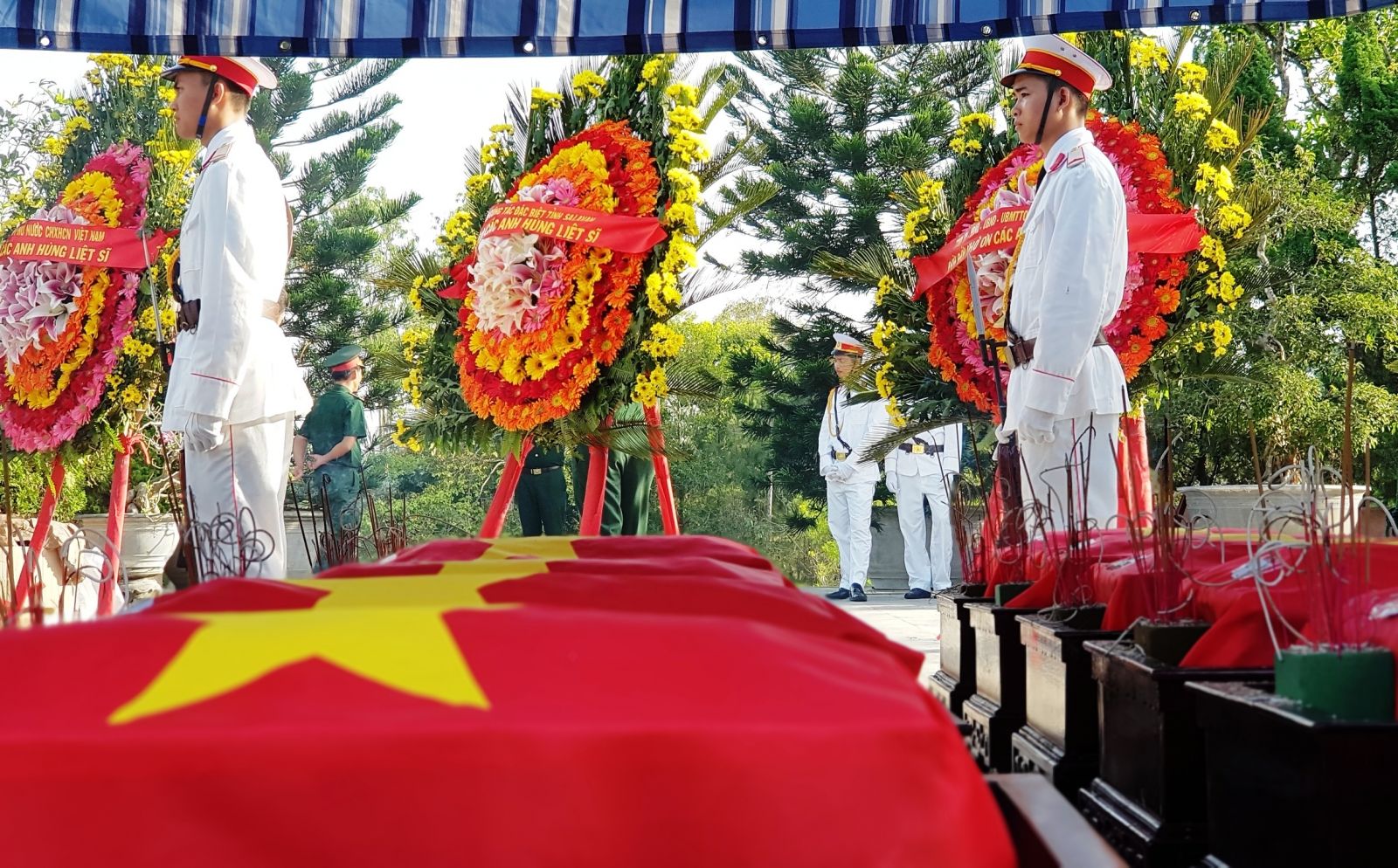 Lãnh đạo tỉnh cùng đông đảo các tầng lớp nhân dân đưa các anh về với đất mẹ
