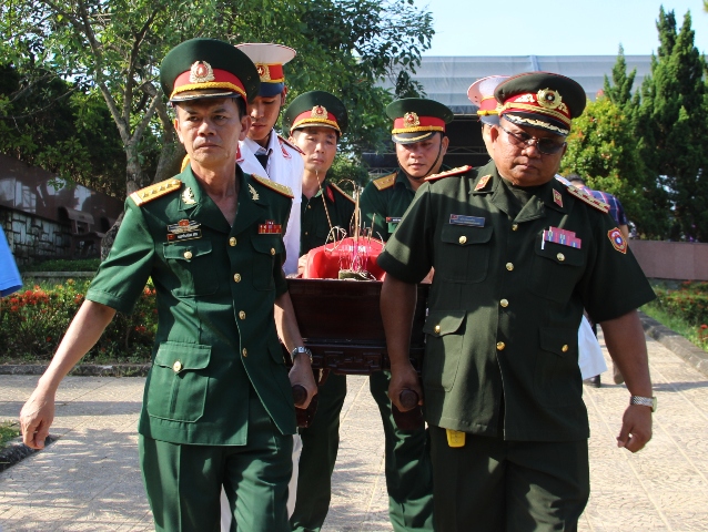Lãnh đạo Bộ chỉ huy quân sự của 2 nước đưa các anh về nơi an nghỉ