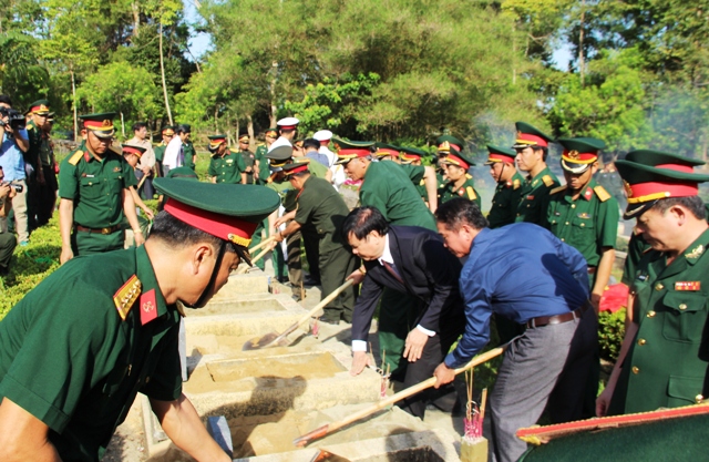 Tham dự có đại diện Ban Công tác đặc biệt của Chính phủ, Bộ Lao động- Thương Binh và Xã hội, lãnh đạo Quân Khu 4, đại diện các tỉnh Salavan và Sê Kông (Lào); ông Bùi Thanh Hà, Phó Bí thư Thường trực Tỉnh ủy; Nguyễn Dung, Phó Chủ tịch UBND tỉnh; đại diện lãnh đạo các sở, ngành, đoàn thể, lực lượng vũ trang và đông đảo người dân cùng các em học sinh.