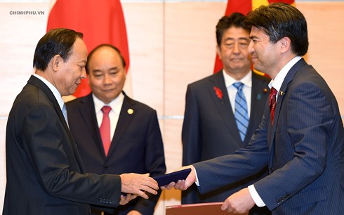 Sau hội đàm, Thủ tướng Nguyễn Xuân Phúc và Thủ tướng Shinzo Abe đã chứng kiến các bộ, ngành và cơ quan hai nước trao đổi 9 văn kiện hợp tác, bao gồm: