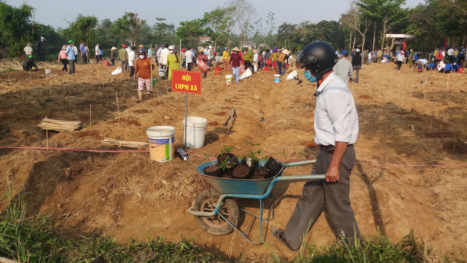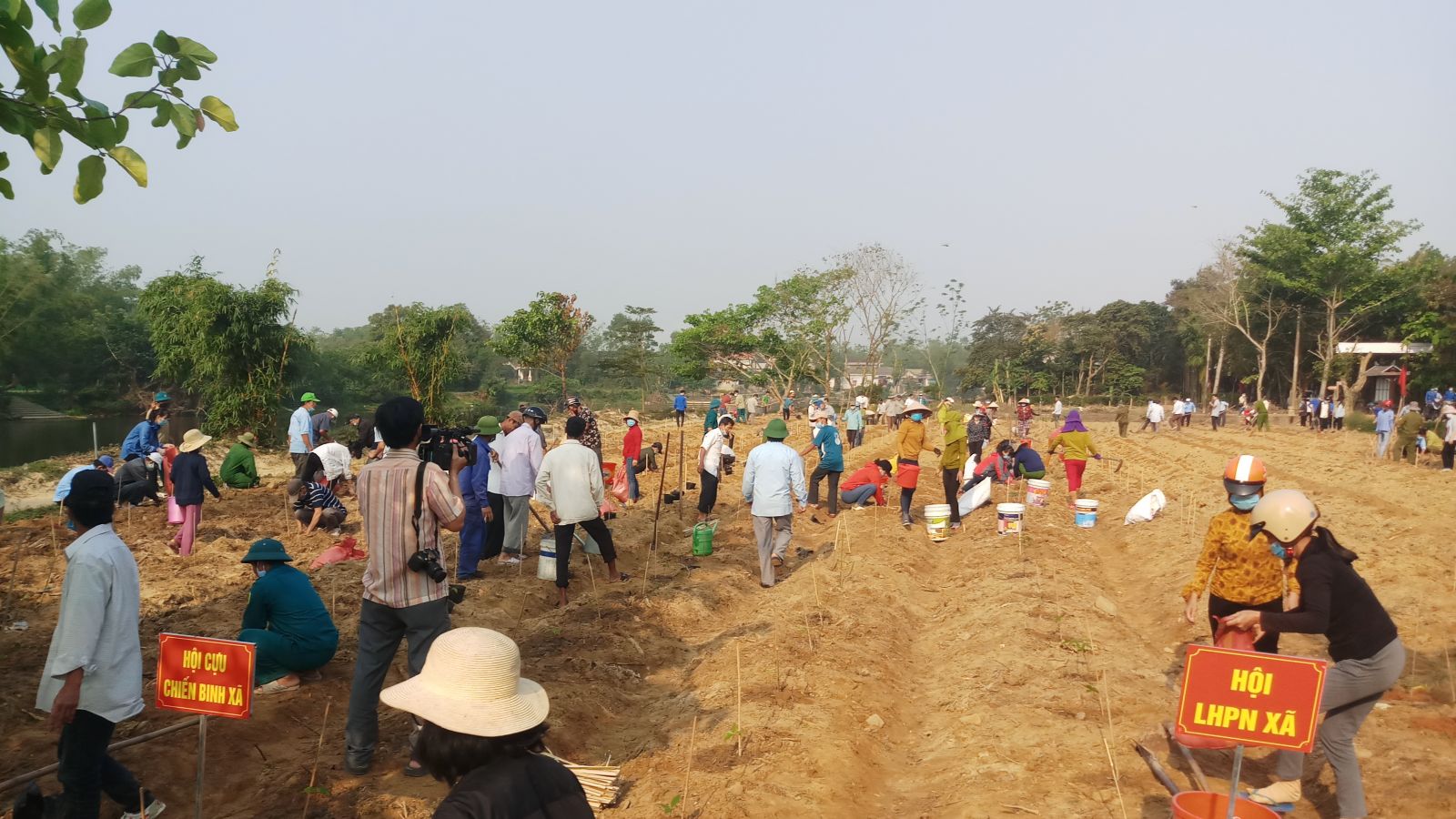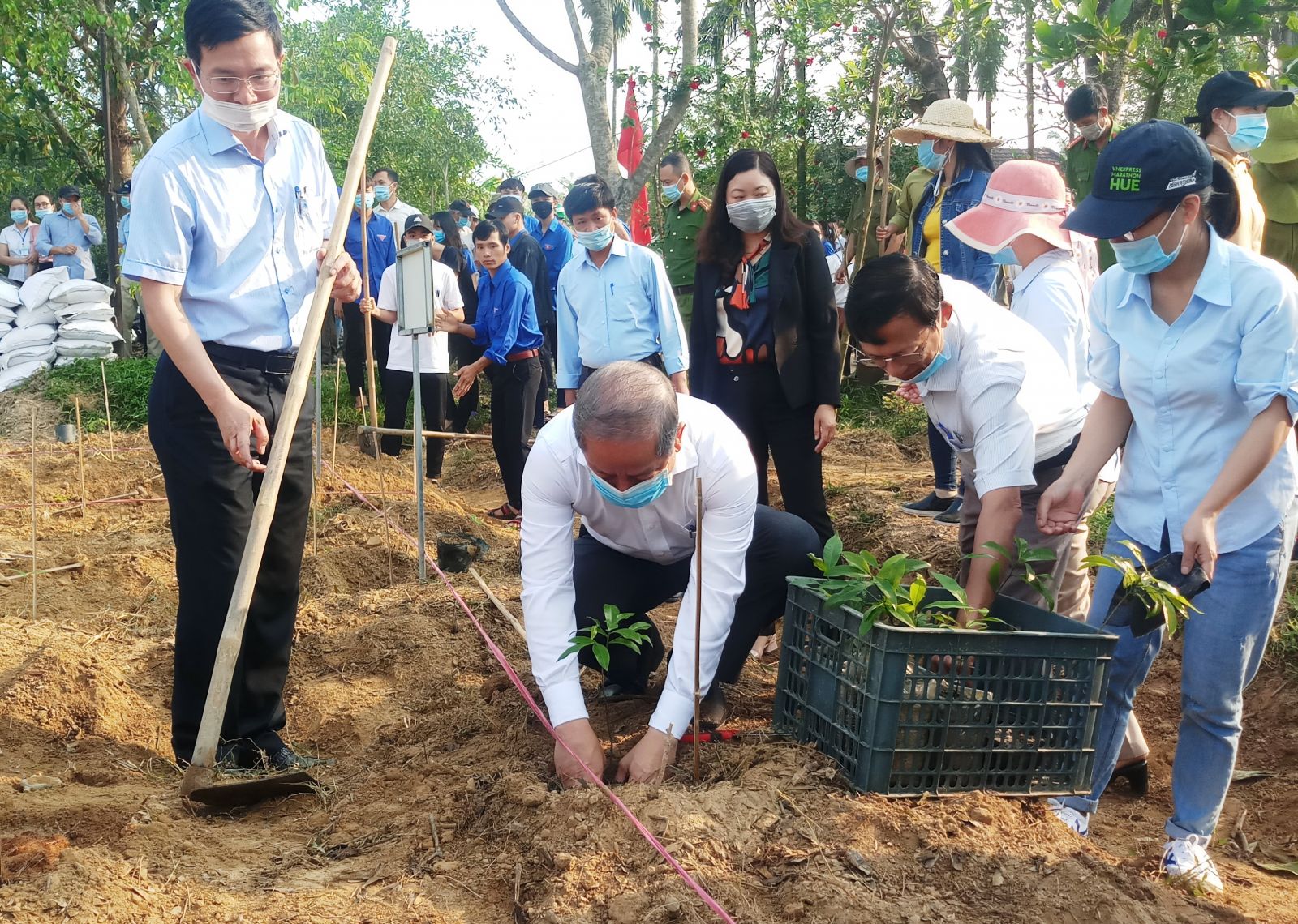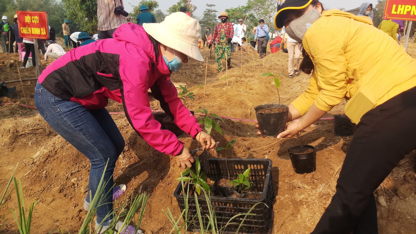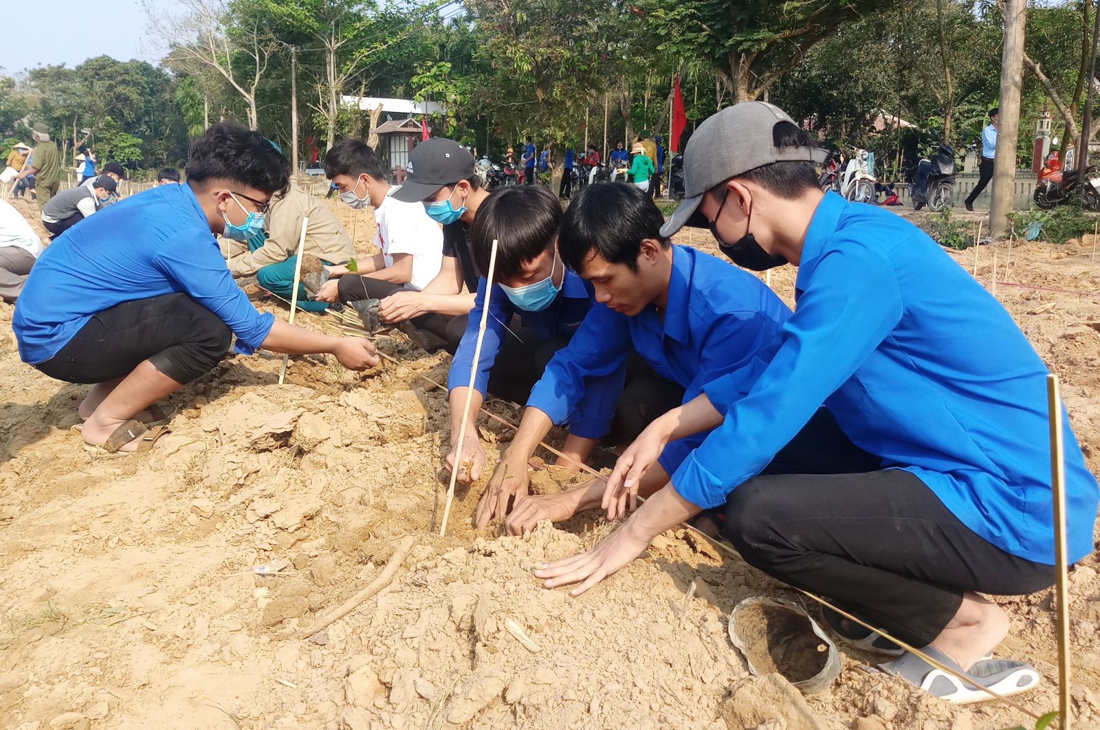 Tham gia trồng mai vàng có lực lượng đoàn viên thanh niên của xã Phong Hòa và thôn Phước Phú