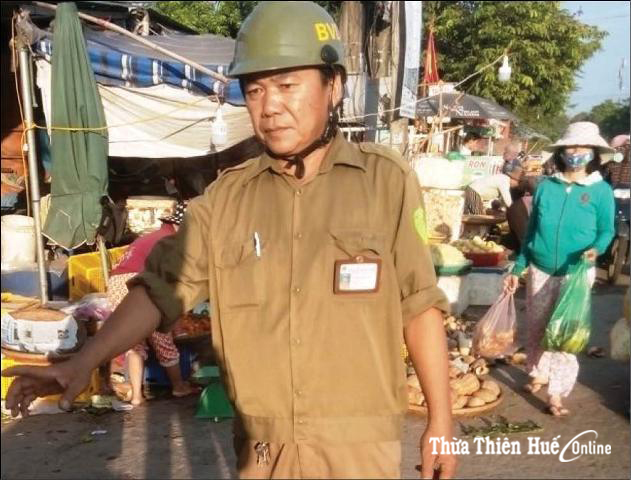 Ông Trần Văn Gần làm nhiệm vụ tại khu vực chợ Phú Hậu