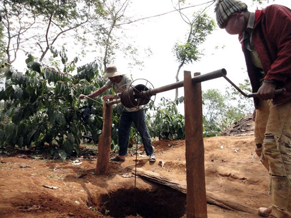 Người trồng cà phê ở Đăk Lăk nỗ lực tìm nguồn nước tưới. ảnh:  T.L