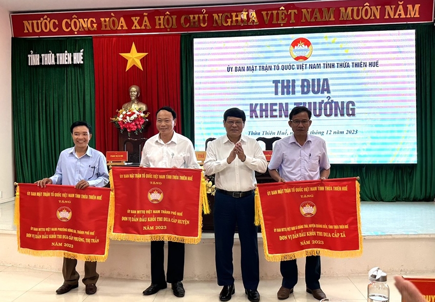 Dịp này, Ủy ban MTTQ VN tỉnh tặng cờ thi đua cho 3 tập thể và tặng bằng khen cho 29 cá nhân và 30 tập thể có thành tích xuất sắc trong công tác Mặt trận năm 2023.