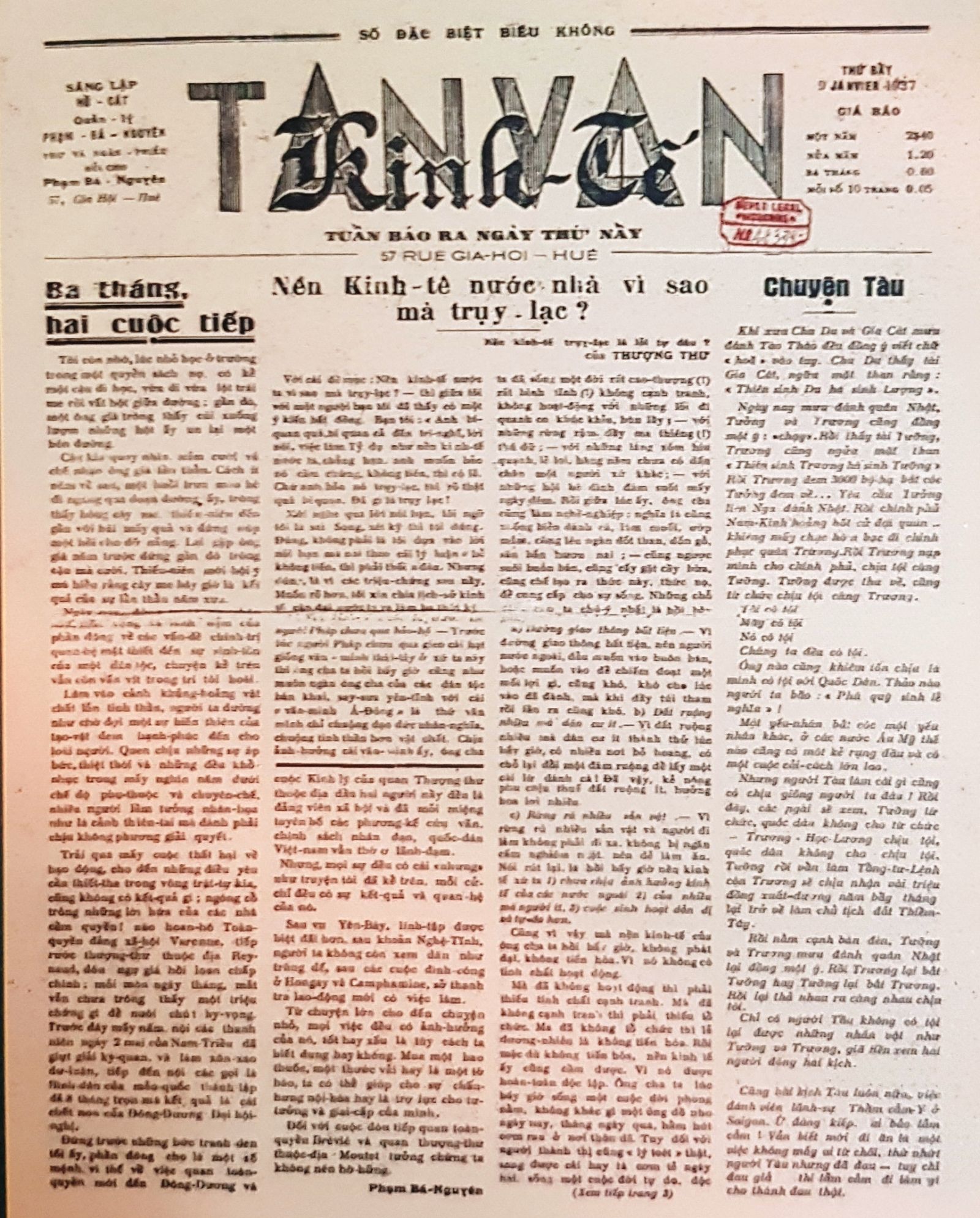 Trang nhất số báo đặc biệt biếu không của Báo Kinh tế tân văn. Ảnh chụp lại từ bản sưu tầm
