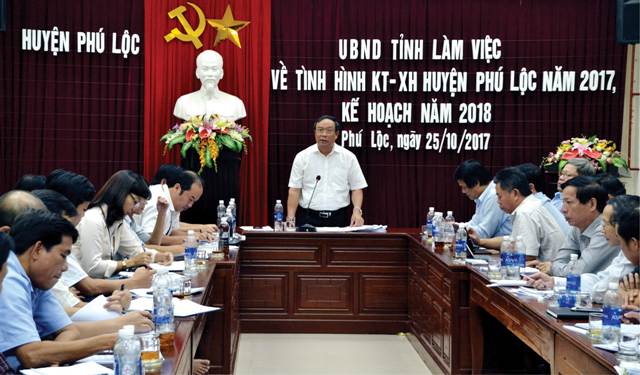 Phát biểu chỉ đạo tại buổi làm việc Chủ tịch UBND tỉnh Nguyễn Văn Cao đánh giá cao các chỉ tiêu của huyện Phú Lộc đề ra từ đầu năm đã thực hiện tốt. Dù vậy có hai hạng mục quan trọng lại không đạt là thu ngân sách và tổng mức đầu tư thì cần được tập trung trong hai tháng còn lại và sang năm 2018.