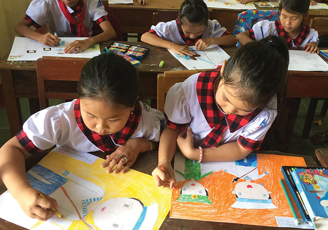 Học sinh ven biển Phong Điền thể hiện tình yêu biển, đảo qua hội thi vẽ tranh