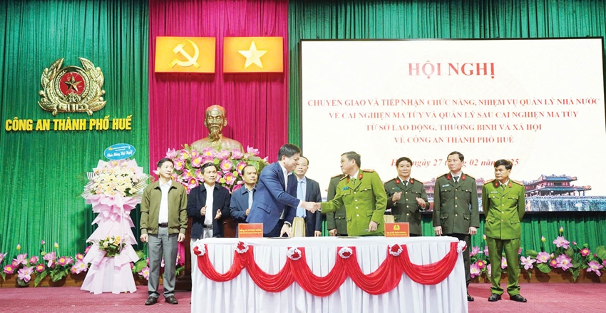 Cuối tháng 2 vừa qua, Công an TP. Huế tổ chức hội nghị chuyển giao và tiếp nhận chức năng, nhiệm vụ quản lý nhà nước từ các sở, ngành về Công an thành phố. Theo đó, Công an thành phố tiếp nhận 5 nhiệm vụ, gồm: Quản lý nhà nước về cai nghiện ma túy và quản lý sau cai nghiện ma túy từ Sở Lao động - Thương binh và Xã hội; Quản lý nhà nước về lý lịch tư pháp và thực hiện dịch vụ công cấp Phiếu lý lịch tư pháp từ Sở Tư pháp; Quản lý nhà nước về sát hạch, cấp Giấy phép lái xe cơ giới đường bộ từ Sở Giao thông Vận tải; Quản lý nhà nước về an toàn thông tin mạng từ Sở Thông tin và Truyền thông; Quản lý nhà nước và thực hiện bảo đảm an ninh hàng không từ Cảng hàng không Quốc tế Phú Bài và Cảng vụ hàng không miền Trung.