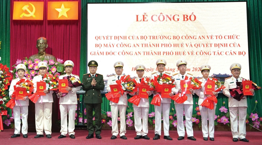 Theo thông tin từ Công an TP. Huế, kể từ ngày 1/3, đơn vị đã sắp xếp, bố trí mỗi công an cấp xã có tối thiểu 12 cán bộ, chiến sĩ theo mô hình của Bộ Công an. Quá trình sắp xếp bộ máy, nhiều lãnh đạo, chỉ huy đã tình nguyện về cơ sở hoặc bố trí ở những vị trí khó khăn, vất vả hơn. Sau sắp xếp, đã giải thể 9 công an quận, huyện, thị xã và 80 đội trực thuộc, chuyển giao 27 nhóm nhiệm vụ, quyền hạn về công an cấp thành phố và công an cấp xã thực hiện. Đồng thời, công bố các quyết định của Bộ trưởng Bộ Công an và Giám đốc Công an thành phố về tổ chức bộ máy, điều động, bố trí cán bộ đối với 58 lãnh đạo cấp phòng, cấp huyện và 222 cấp đội, cấp xã.