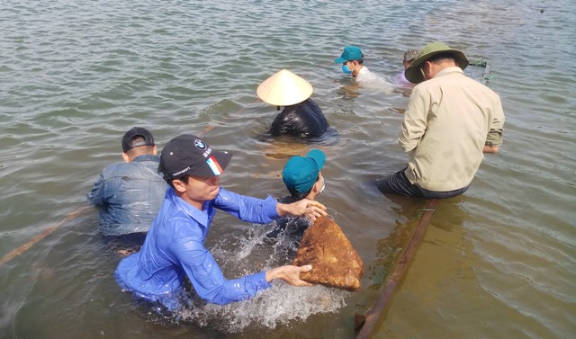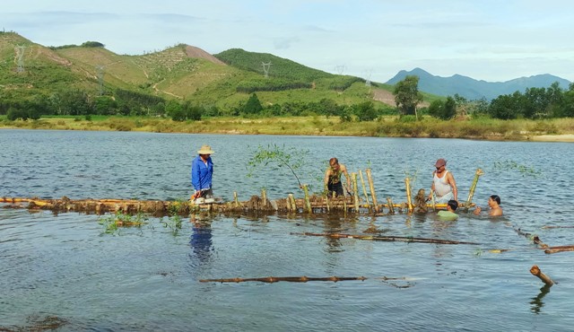 Người dân và đoàn viên thanh niên phải ngâm mình dưới nước hàng giờ đồng hồ