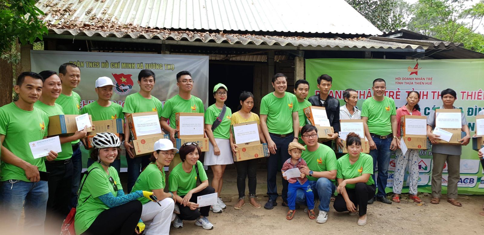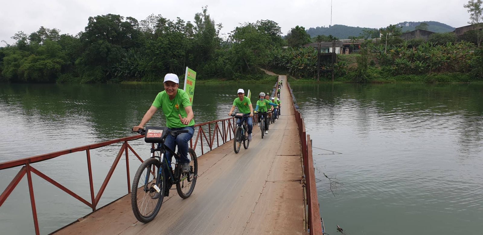 Hơn 20 doanh nhân trong Hội đã tham gia đạp xe đạp theo lộ trình từ thành phố Huế đến xã Hương Thọ và dự lễ Thượng cờ Tổ quốc trên cây sến cao nhất xã tại nhà ông Lê Văn Cư, thôn La khê bãi.