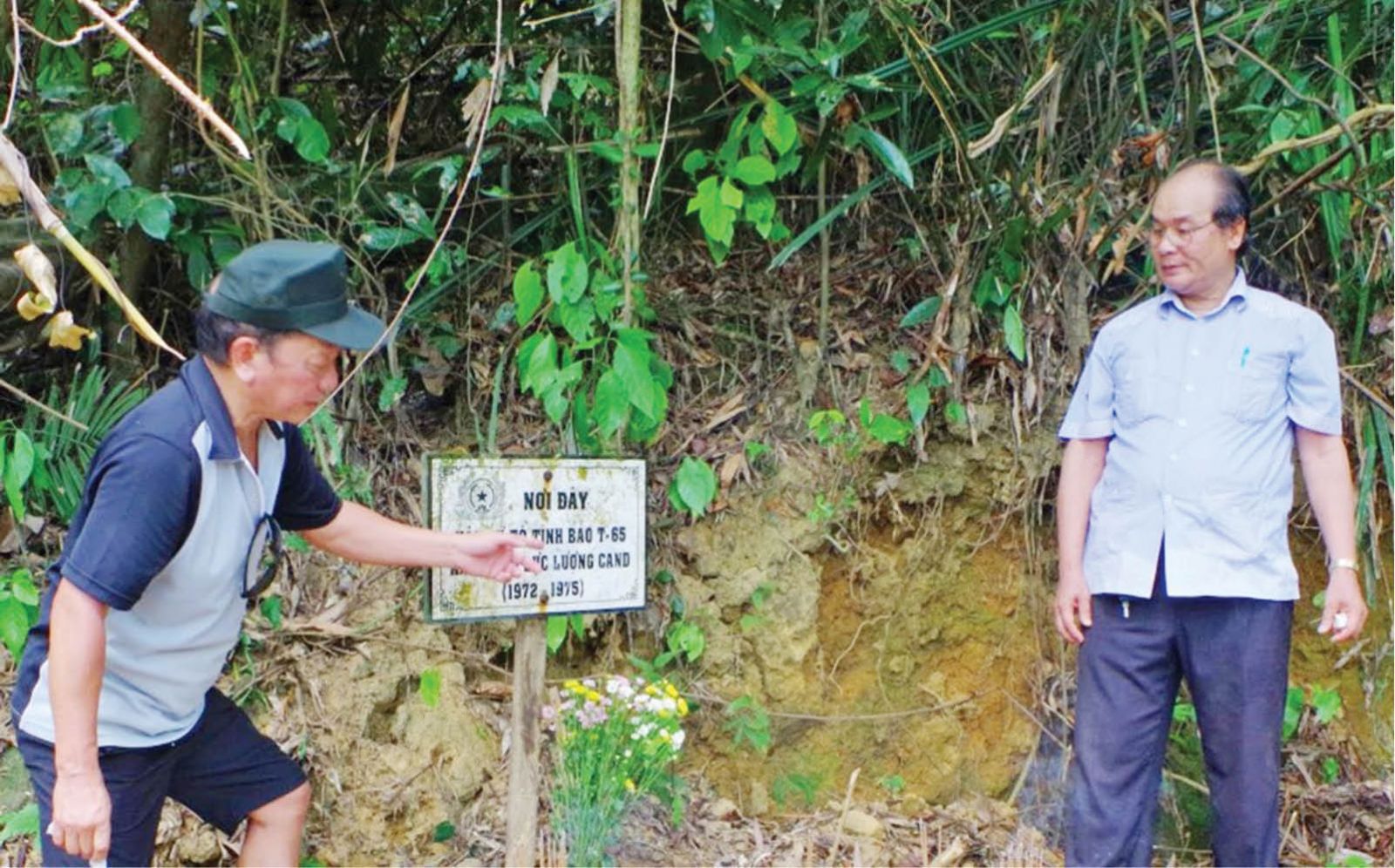 Tác giả (bên phải) trong một lần trở lại hậu cứ khe Quýt (Ảnh chụp trước thời điểm bùng phát dịch COVID-19)
