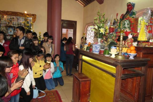 | Thành kính viếng tổ đình Thuyền Tôn ngày xuân. Ảnh: Hồ Minh |