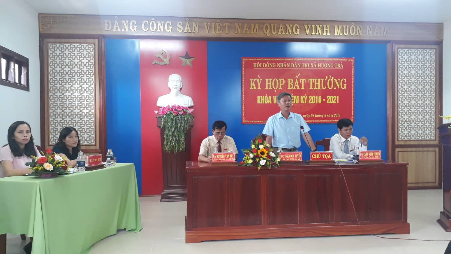HNN.VN - Chiều 8/8, HĐND thị xã Hương Trà khoá VI, nhiệm kỳ 2016-2021 đã tiến hành kỳ họp bất thường để bàn và thông qua Nghị quyết về việc sắp xếp các đơn vị hành chính cấp xã trên địa bàn.