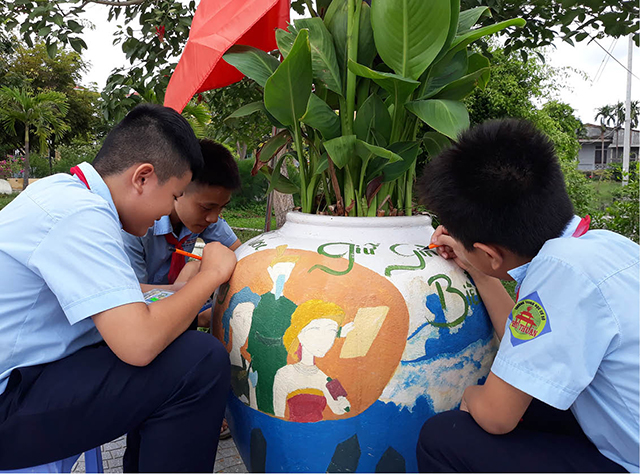 Học sinh Trường THCS Phú Thuận vẽ biểu tượng bảo vệ môi trường