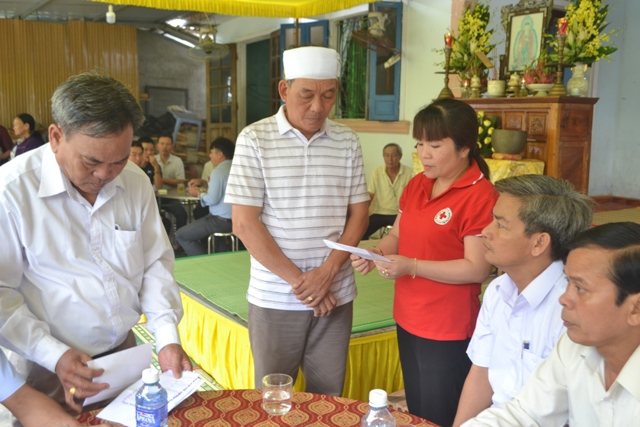 Thay mặt đoàn, bà Lê Thị Hiền - Phó Chủ tịch Tỉnh Hội CTĐ tỉnh gửi lời chia buồn sâu sắc đến với gia đình người bị nạn, động viên gia đình sớm vượt qua đau thương mất mát và thay mặt Trung ương Hội CTĐ Việt Nam trao số tiền 3 triệu đồng cho gia đình nạn nhân.