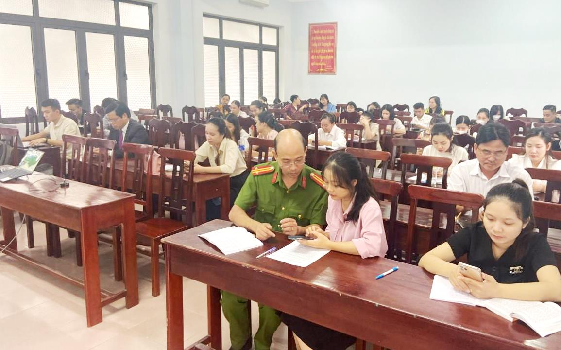 HNN.VN - Sáng 10/11, Đội Cảnh sát quản lý hành chính, Đoàn Thanh niên Công an TX. Hương Thủy phối hợp Công an P. Phú Bài tổ chức tuyên truyền, hướng dẫn cài đặt, kích hoạt đăng ký tài khoản định danh điện tử (VNEID) cho hơn 200 cán bộ, đảng viên tại Lớp bồi dưỡng nghiệp vụ công tác Đảng và Lớp bồi dưỡng đảng viên mới của TX. Hương Thủy