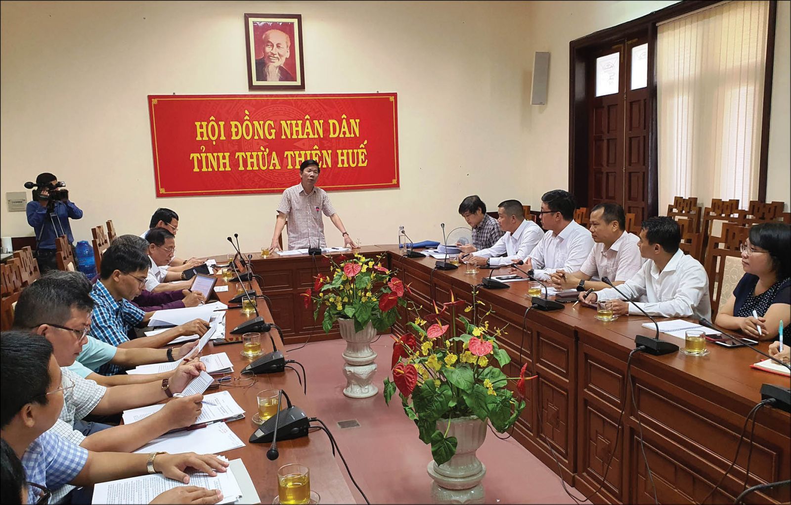 Phó Chủ tịch Thường trực HĐND tỉnh Cái Vĩnh Tuấn tại buổi giám sát với đại diện cộng đồng doanh nghiệp tỉnh