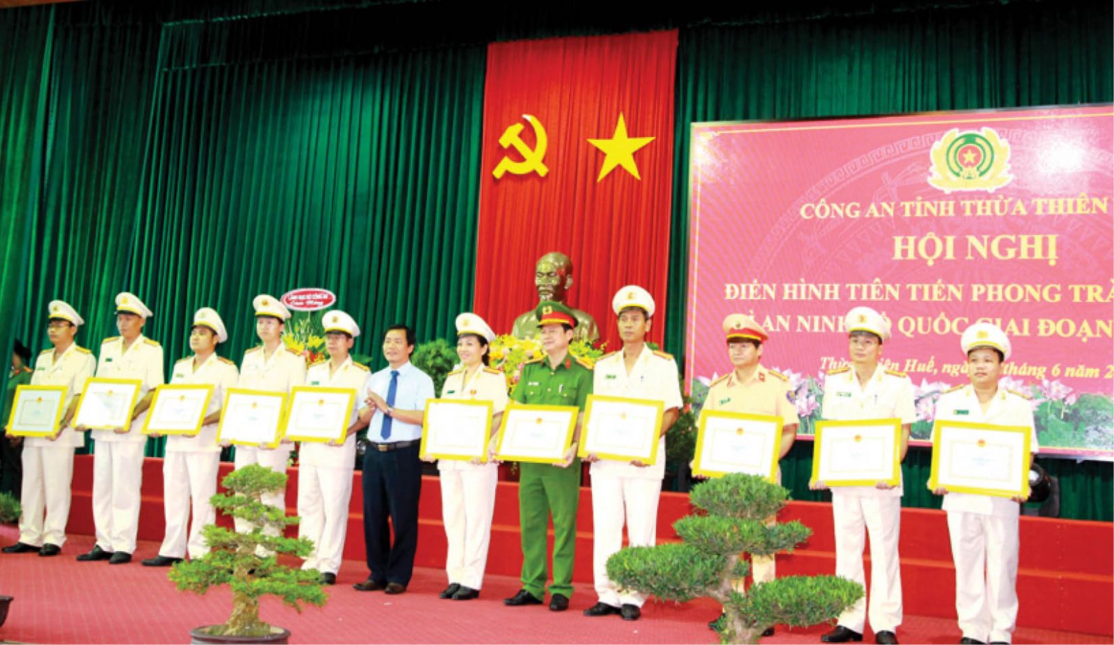Phó Bí thư Tỉnh ủy, Chủ tịch UBND tỉnh Nguyễn Văn Phương khen thưởng các cá nhân, tập thể điển hình Công an tỉnh và công an các đơn vị, địa phương trong phong trào "Bảo vệ an ninh Tổ quốc"