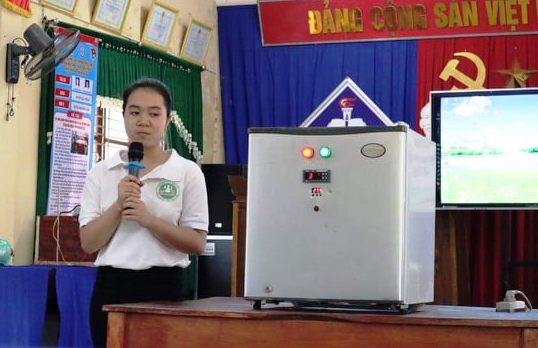 Học sinh Trường THCS Điền Hòa (huyện Phong Điền) trình bày ý tưởng về đề tài Tủ điều hòa nhiệt năng tại một cuộc thi Cuộc thi Sáng tạo thanh thiếu niên nhi đồng huyện Phong Điền năm 2019