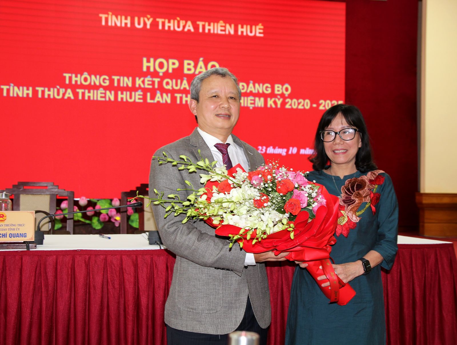 Dịp này, Chủ tịch Hội Nhà báo tỉnh, Tổng Biên tập Báo Thừa Thiên Huế Nguyễn Thị Hồng Hạnh đã thay mặt lãnh đạo Hội Nhà báo và các hội viên, các nhà báo tặng hoa chúc mừng Bí thư Tỉnh ủy Lê Trường Lưu.