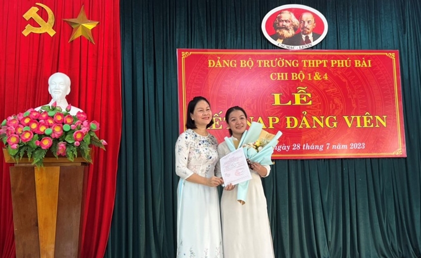 Thầy giáo Hoàng Minh – Hiệu trưởng, Bí thư Đảng bộ Trường THPT Phú Bài cho biết, bên cạnh sự ghi nhận sau quá trình phấn đấu, tu dưỡng của Mỹ Linh và Như Ý, việc kết nạp Đảng cho 2 quần chúng còn nhằm bổ sung lực lượng, trẻ hoá và nâng cao chất lượng đội ngũ đảng viên, bảo đảm tính kế thừa và phát triển, góp phần nâng cao năng lực lãnh đạo, sức chiến đấu của Đảng.
