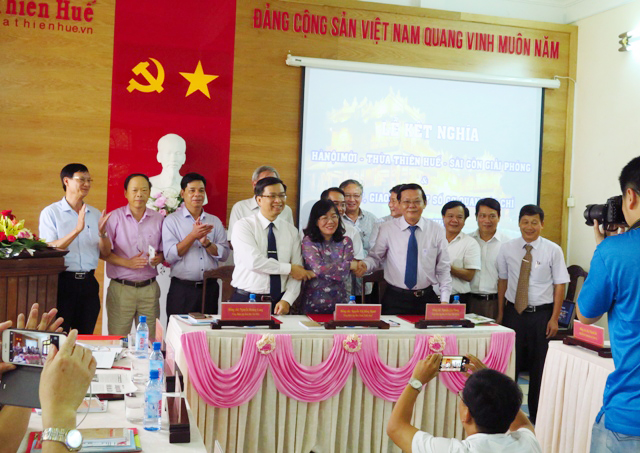 Sáng 7/7, tại TP. Huế, Ban Biên tập Báo Thừa Thiên Huế tổ chức lễ kết nghĩa, ký kết biên bản ghi nhớ giữa 3 báo Hà Nội mới, Thừa Thiên Huế, Sài Gòn giải phóng.