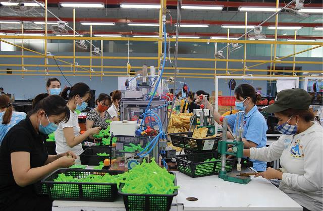 Công nhân làm việc tại nhà máy sản xuất đồ chơi trẻ em ở Khu kinh tế Chân Mây - Lăng Cô