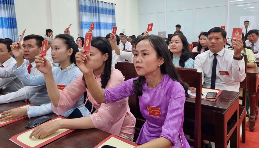| Đại biểu nhất trí thông qua các nghị quyết tại Đại hội phường Mỹ Thượng. Ảnh: Quỳnh Anh |