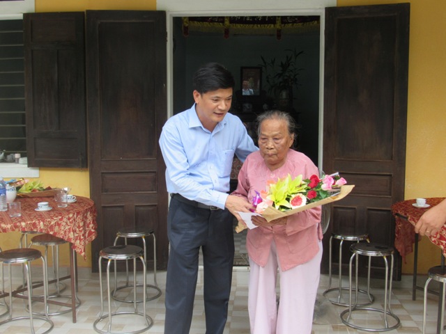 Tặng quà và hoa, chúc mẹ Nguyễn Thị Theo sống vui khỏe trong ngôi nhà mới