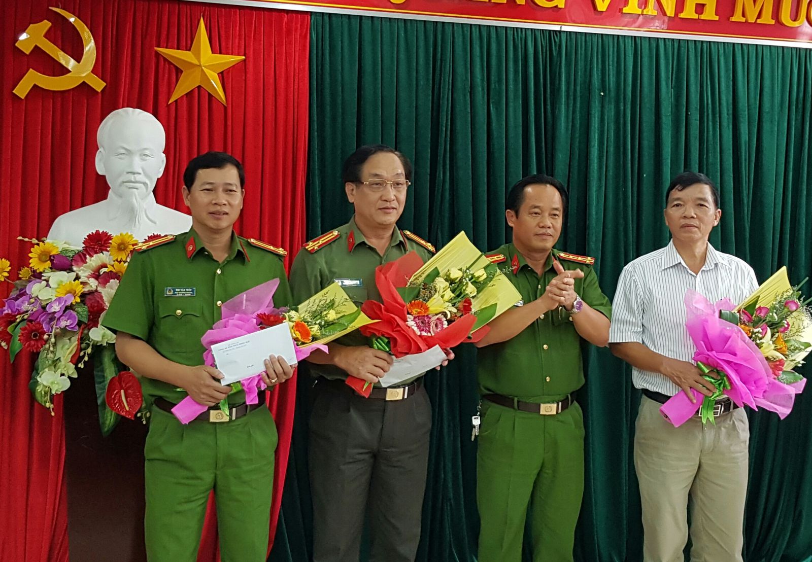| Đại tá Đặng Ngọc Sơn trao thưởng cho ban chuyên án |