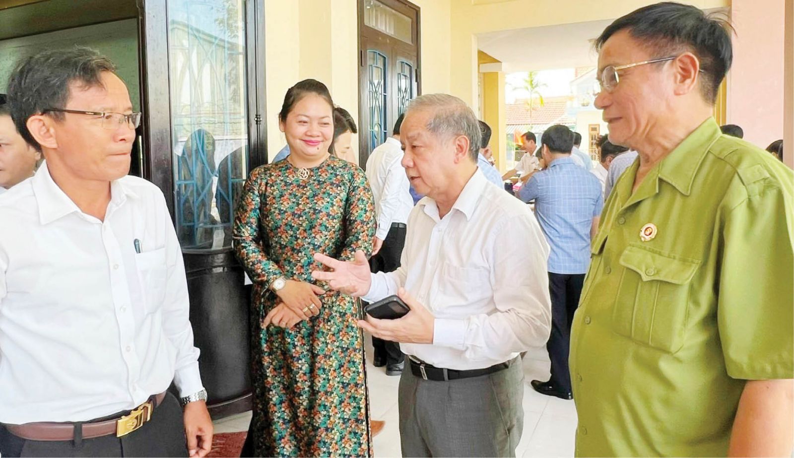 Phó Bí thư Thường trực Tỉnh ủy, Trưởng Ban Chỉ đạo thực hiện quy chế dân chủ ở cơ sở tỉnh Phan Ngọc Thọ và các đại biểu bên hành lang hội thảo