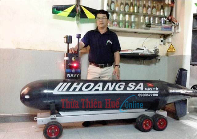 Tác giả Lê Ngà và mô hình tàu ngầm Hoàng Sa đạt giải khuyến khích Hội thi