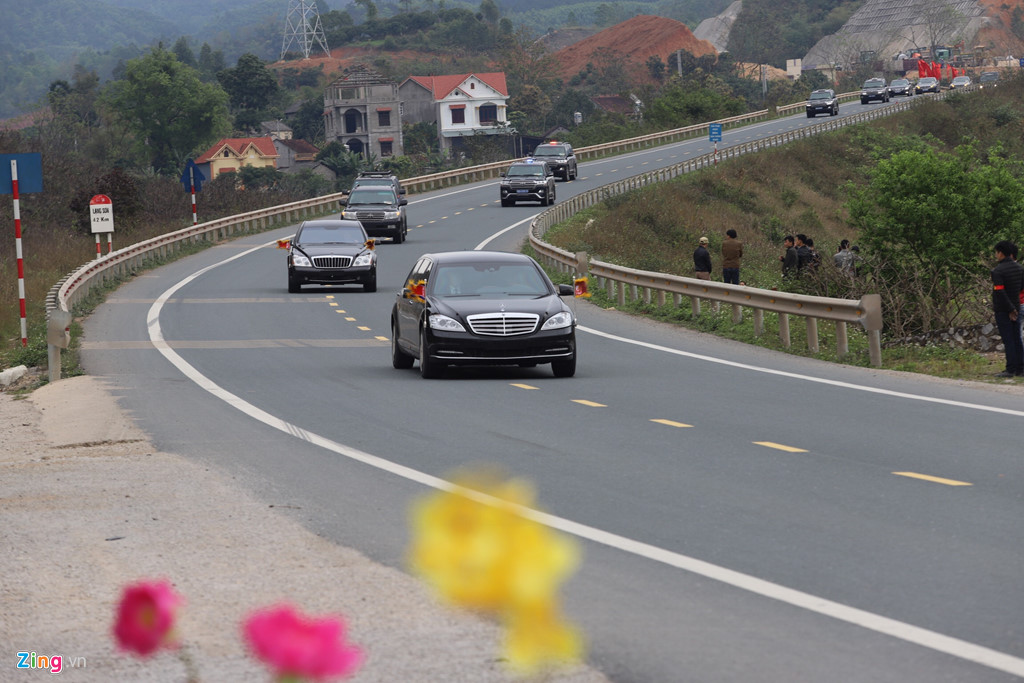 Lúc 9h20 phút, đoàn xe lãnh đạo Triều Tiên Kim Jong Un xuất hiện tại Huyện Chi Lăng, tỉnh Lạng Sơn, thẳng tiến về Hà Nội theo tuyến đường QL 1A.