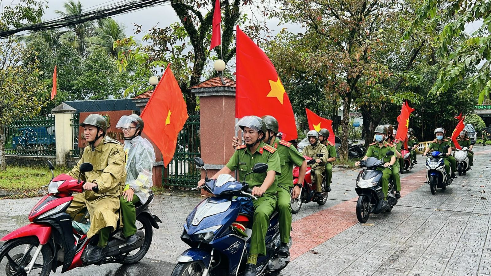 Sau lễ ra quân, lực lượng công an huyện Phú Vang tuần hành trên các tuyến đường
