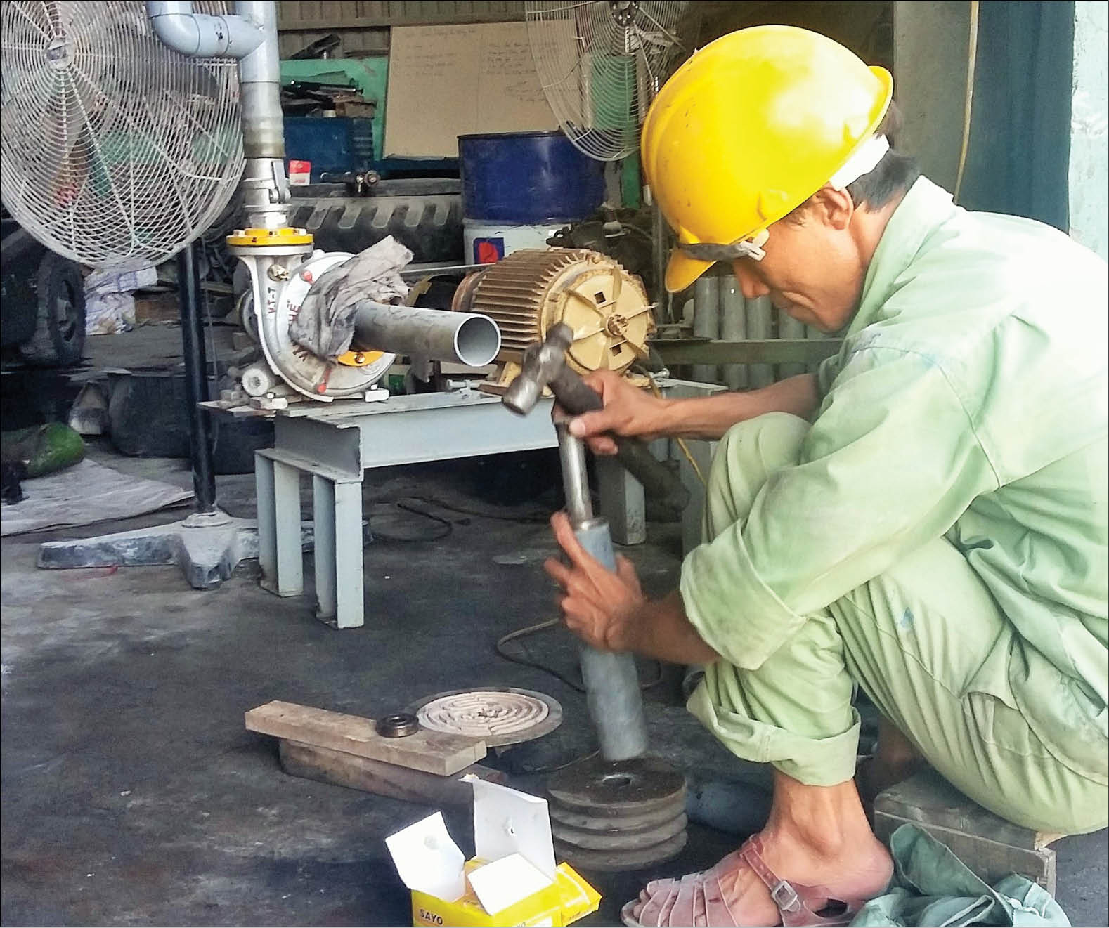 Cải tiến con lăn bằng ống nhựa giúp tiết kiệm chi phí ở Công ty TNHH MTV Vico Silica (Phong Điền) (Ảnh do LĐLĐ tỉnh cung cấp)