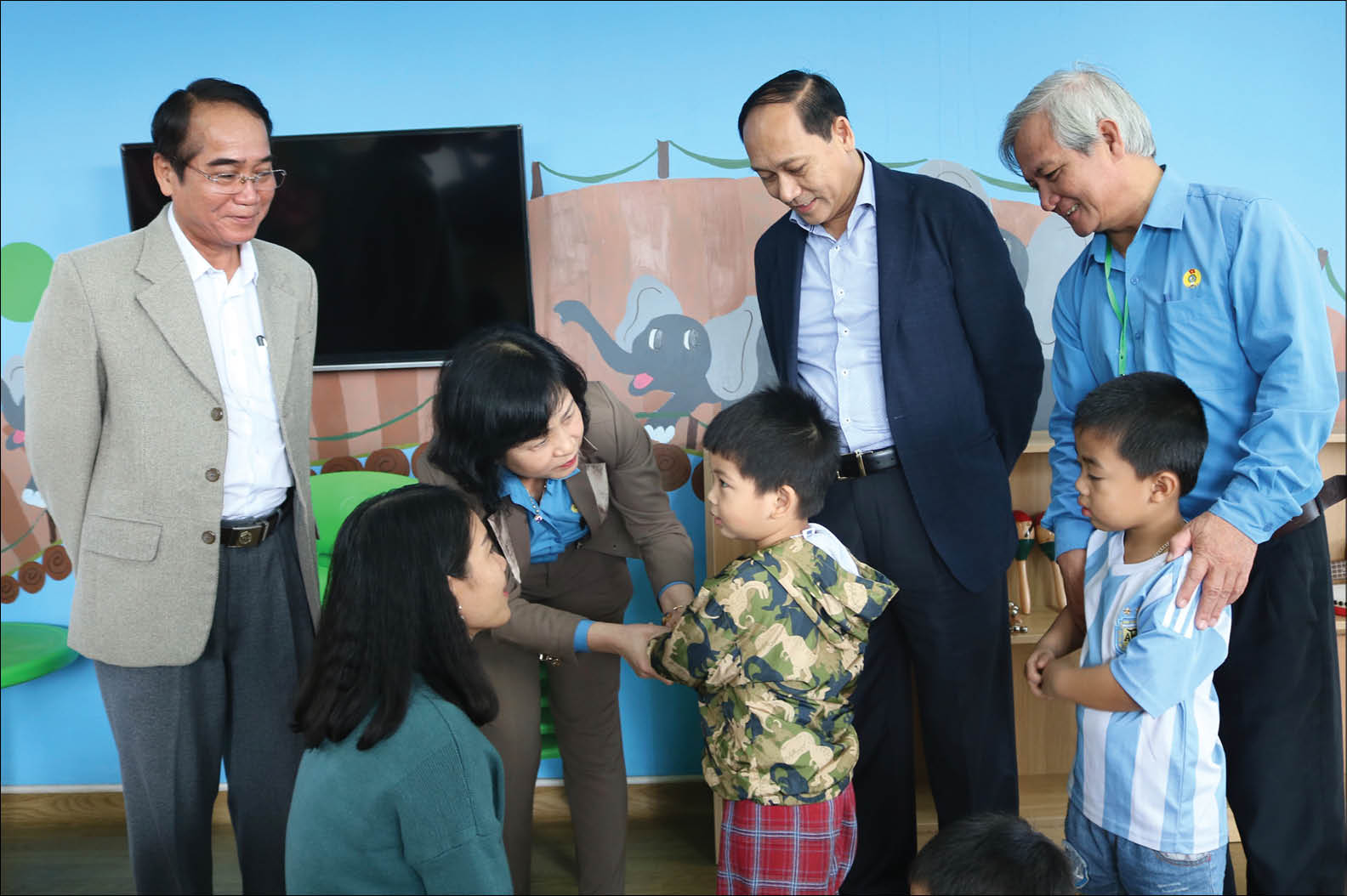 Phó Bí thư Thường trực Tỉnh ủy Bùi Thanh Hà (ngoài cùng bên trái) thăm Trường mầm non Scavi (KCN Phong Điền) - điển hình trong việc chăm lo đời sống cho người lao động