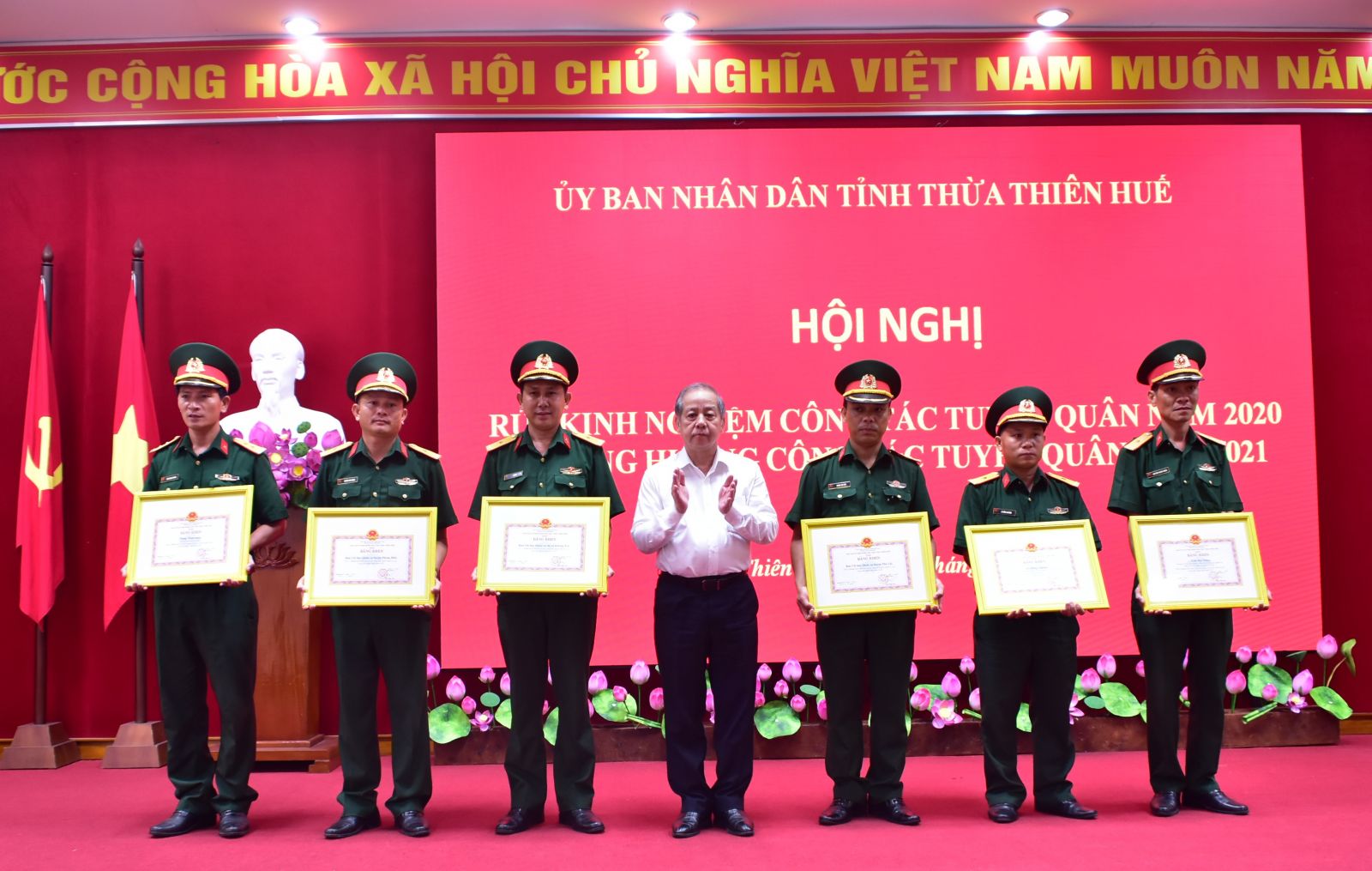 HNN.VN - Chiều 23/6, UBND tỉnh tổ chức hội nghị rút kinh nghiệm công tác tuyển chọn, gọi công dân nhập ngũ năm 2020 và triển khai nhiệm vụ năm 2021. Phó Bí thư Tỉnh ủy, Chủ tịch UBND tỉnh, Chủ tịch Hội đồng Nghĩa vụ Quân sự tỉnh Phan Ngọc Thọ chủ trì hội nghị.