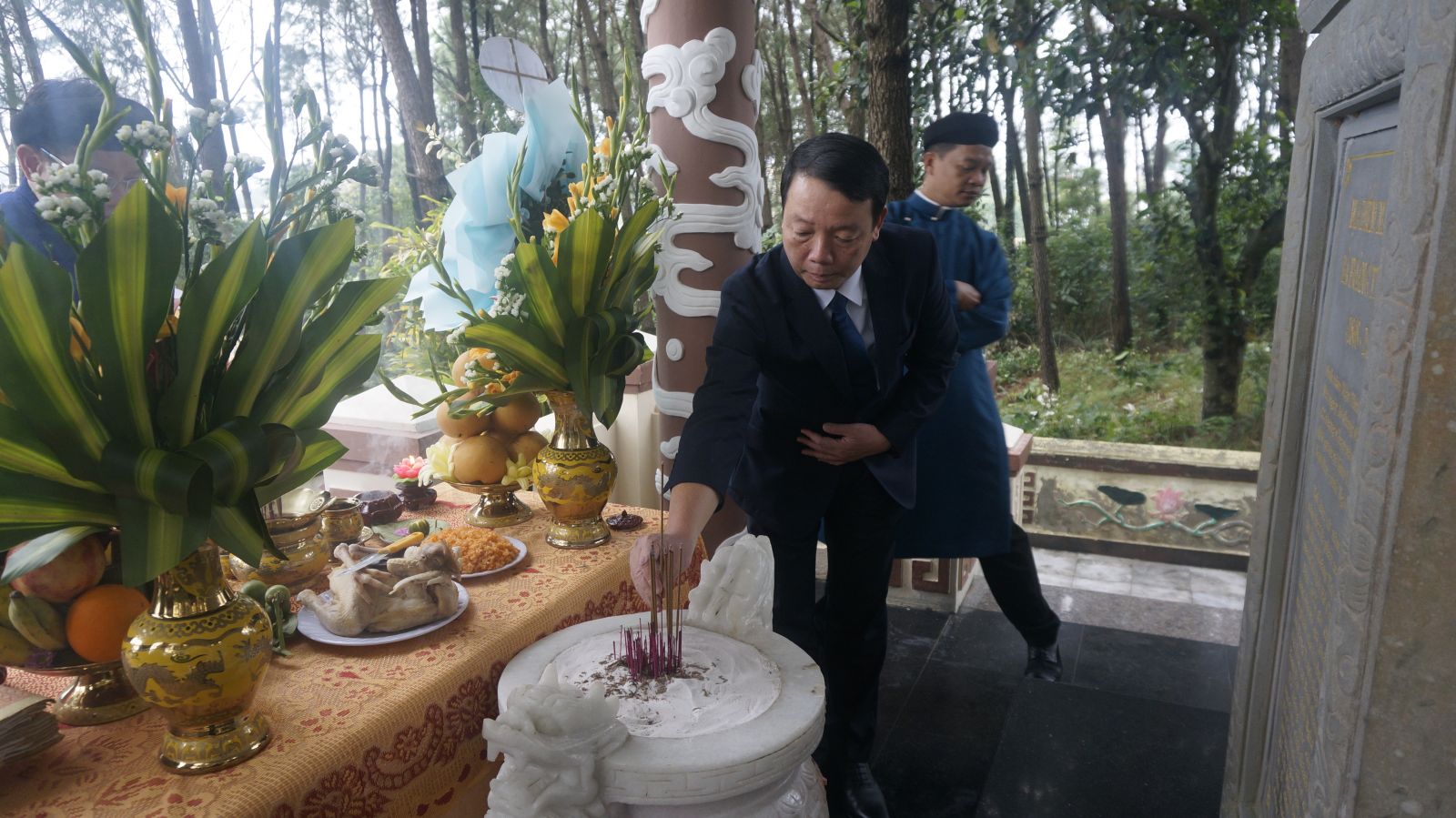 Bí thư Thành ủy Phan Thiên Định dâng hương tại Nhà bia tưởng niệm bà Hoàng Thị Loan tại khu vực Núi Bân