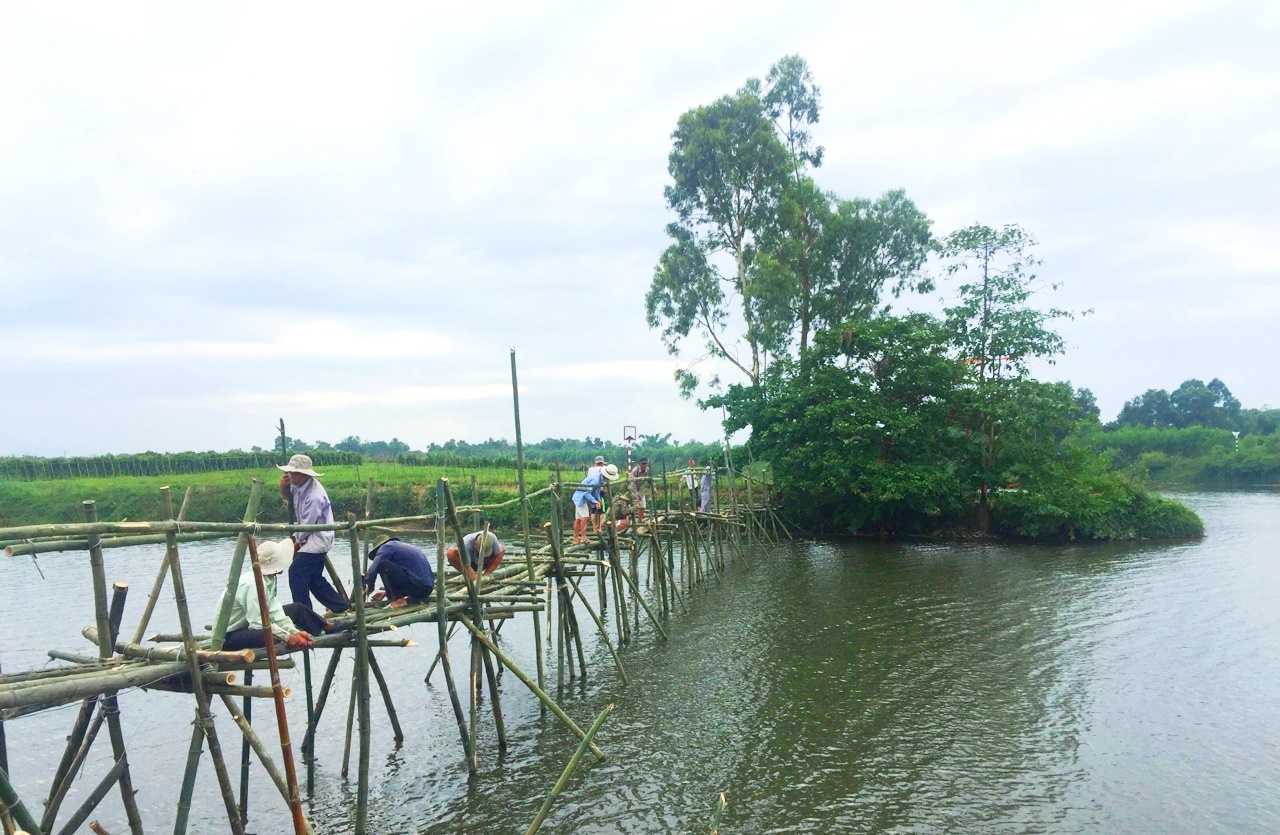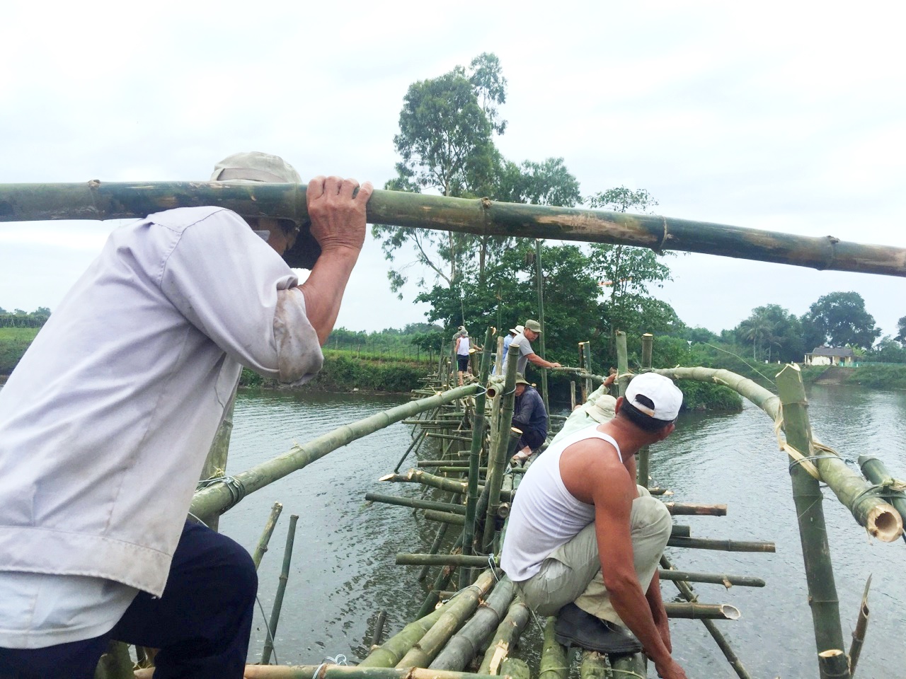 Một số hình ảnh làm cầu tre của người dân Thanh Lương 2: