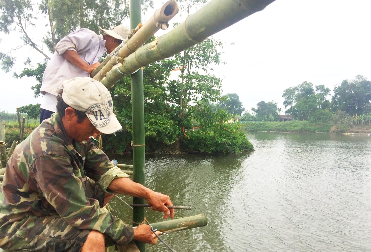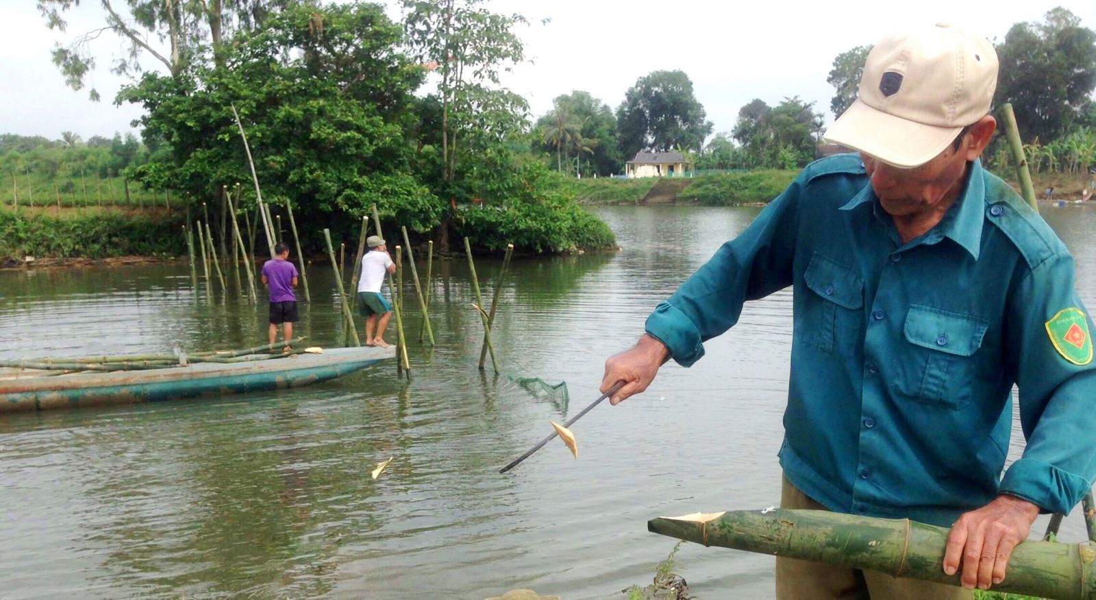Vát một đầu tre nhọn để dễ đóng xuống sông