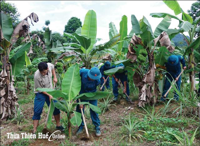 Gần 500 mét ống dẫn nước sạch về thôn A Chiếu sau nhiều ngày mưa xối xả đã nổi hẳn lên mặt đất. Đàn trâu, bò của các hộ dân đi ăn ngang qua thường xuyên dẫm đạp làm vỡ ống, trong thôn hay bị mất nước. Sau khi nhận được thông tin của thôn, Ban CHQS xã đã huy động lực lượng dân quân đến sửa chữa và đào rãnh đưa ống nước xuống sâu bảo đảm an toàn. Ông Trần Văn Lách, Trưởng thôn A Chiếu cho biết: “Không những cán bộ, chiến sĩ lực lượng dân quân giúp sửa chữa đường ống nước, thời gian qua anh em còn tích cực giúp một số hộ dân trong thôn xóa bỏ vườn tạp, phát quang bờ rậm, giúp các hộ neo đơn đào hố trồng cây, làm vườn”.
