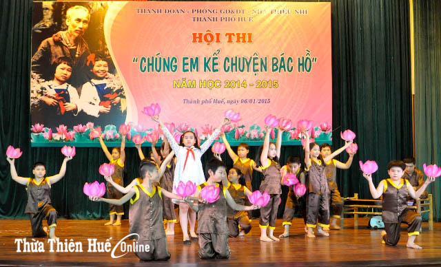 Các đội viên tham dự hội thi “Chúng em kể chuyện Bác Hồ”