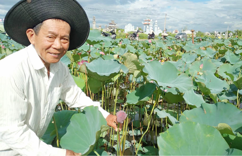Cựu chiến binh Nguyễn Đại Cư ở Hương Vinh (Huế) bên hồ sen của mình
