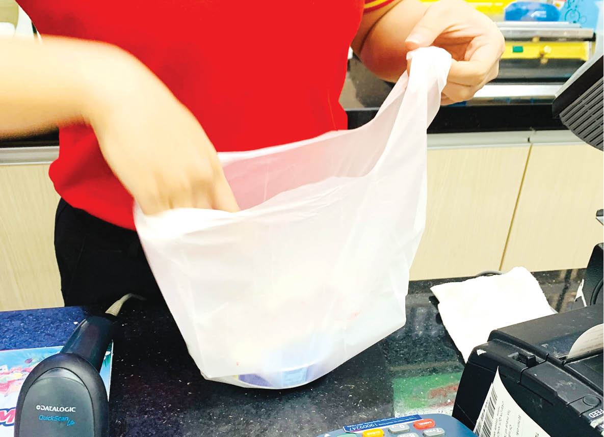 Túi ni lông vẫn còn sử dụng ở hầu hết các siêu thị. Ảnh: MC