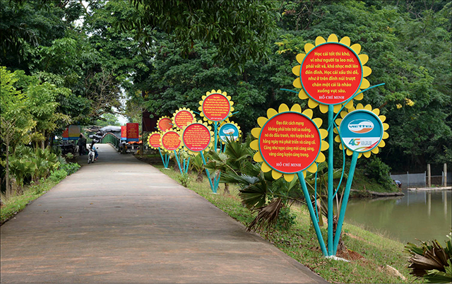Những "bông hoa" ghi lại lời dạy của Bác trên dọc con đường dẫn vào di tích