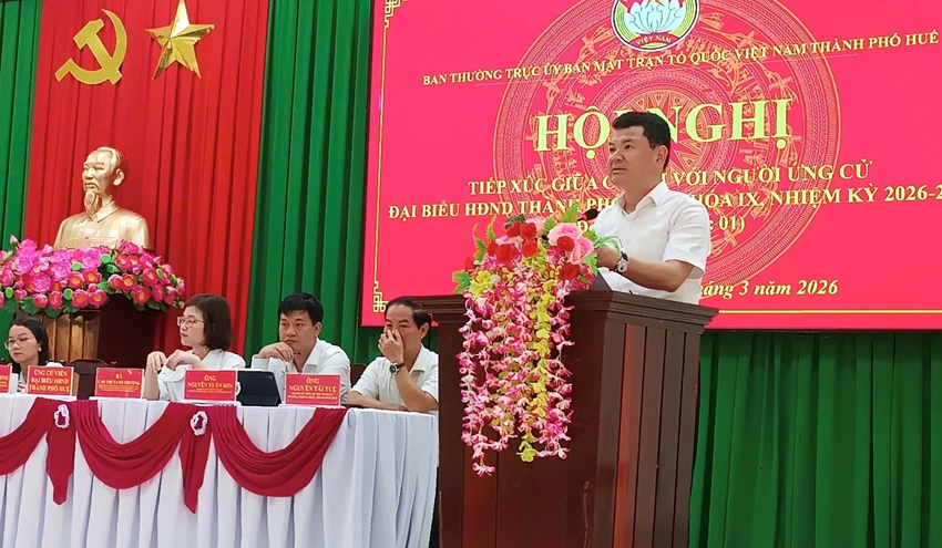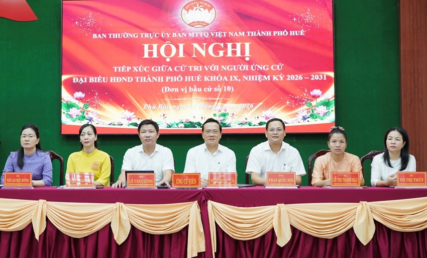 Các ứng cử viên đại biểu Hội đồng nhân dân thành phố Huế khóa IX, nhiệm kỳ 2026-2031 đã có buổi tiếp xúc cử tri tại phường Phong Thái (đơn vị bầu cử số 1) nhằm trình bày chương trình hành động và lắng nghe tâm tư, nguyện vọng của Nhân dân trước ngày bầu cử.