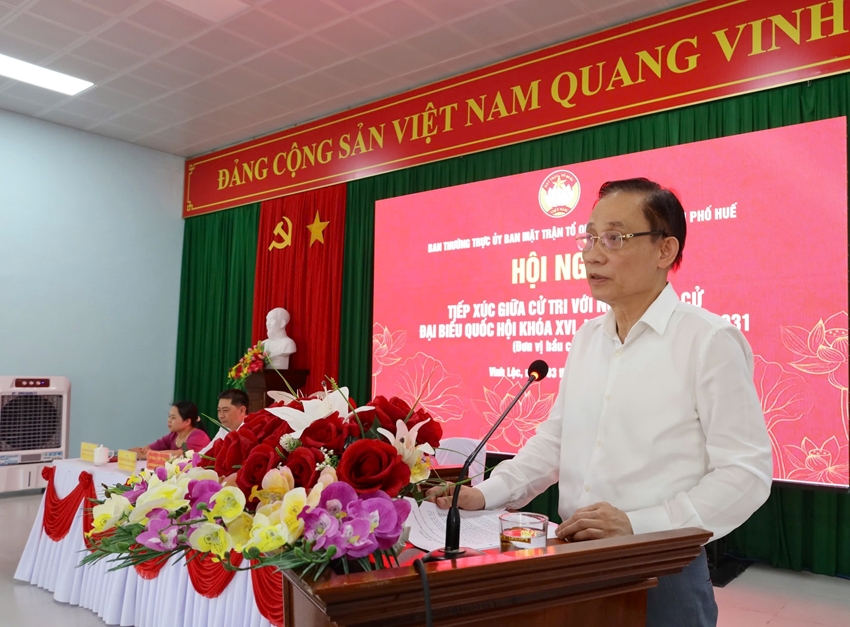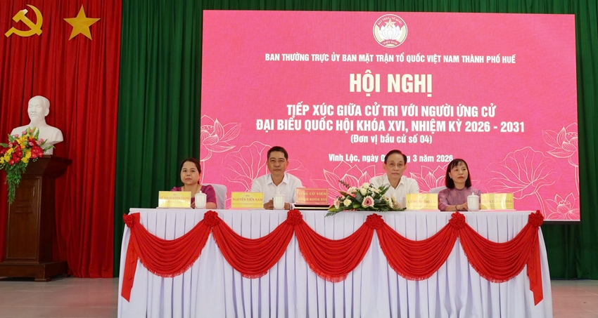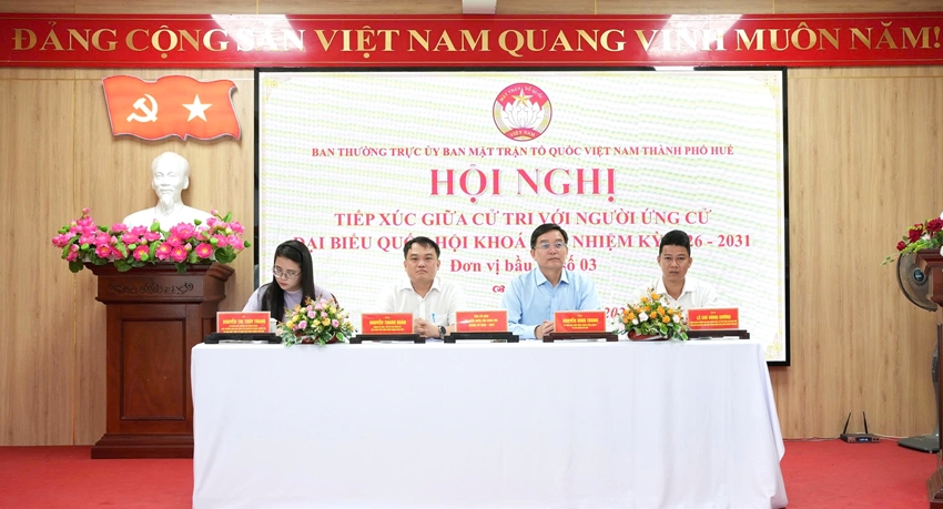 Cùng ngày, Ban Thường trực Ủy ban MTTQ Việt Nam thành phố Huế tổ chức Hội nghị tiếp xúc giữa cử tri với người ứng cử ĐBQH khóa XVI, nhiệm kỳ 2026 - 2031 tại phường Phong Điền (đơn vị bầu cử số 1).