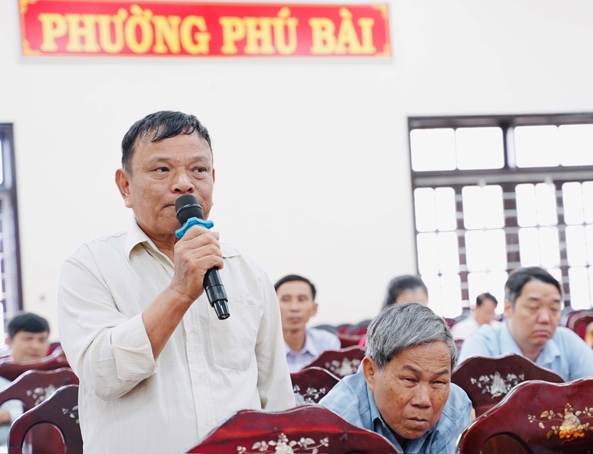 | Cử tri phường Phong Thái đề đạt ý kiến nguyện vọng tại hội nghị |