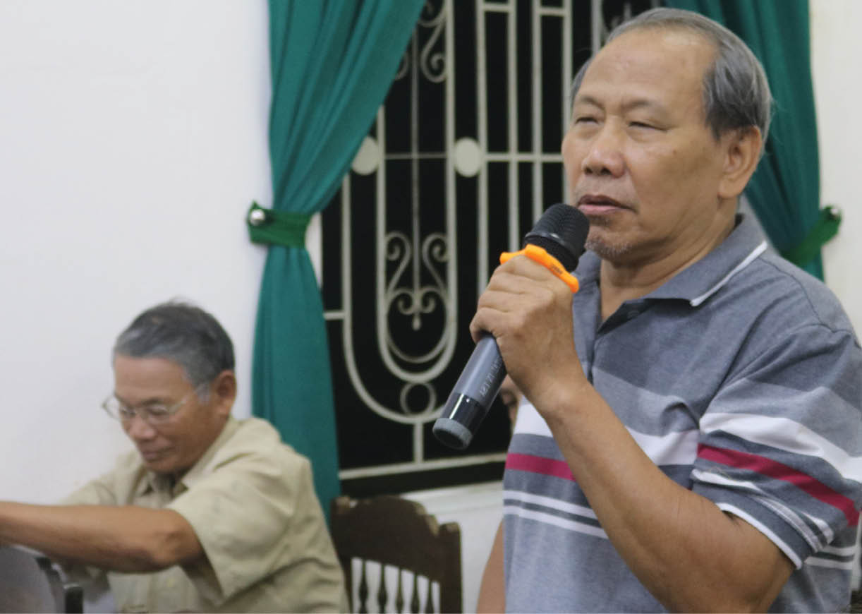 Người dân phát biểu góp ý tại hội nghị lấy ý kiến nhận xét và tín nhiệm của cử tri nơi cư trú ở tổ dân phố 8, phường Thuận Hòa (TP. Huế)